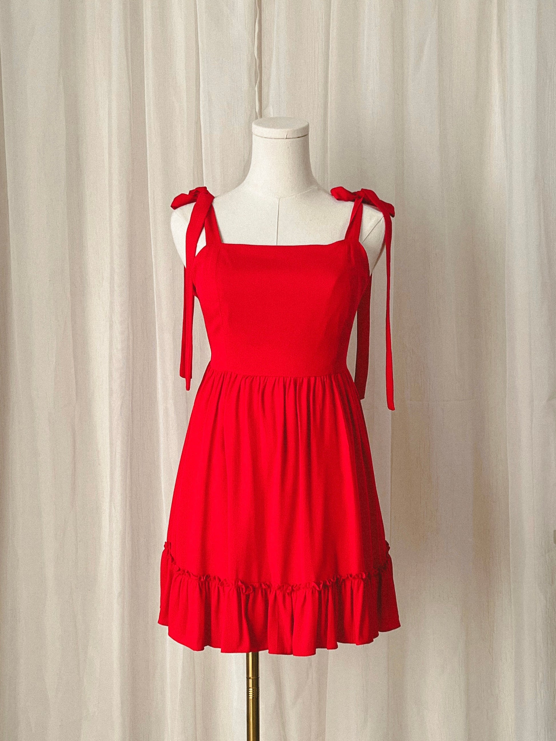 Vestido corto de tirantes anchos de lazo con detalle de lazo en espalda.